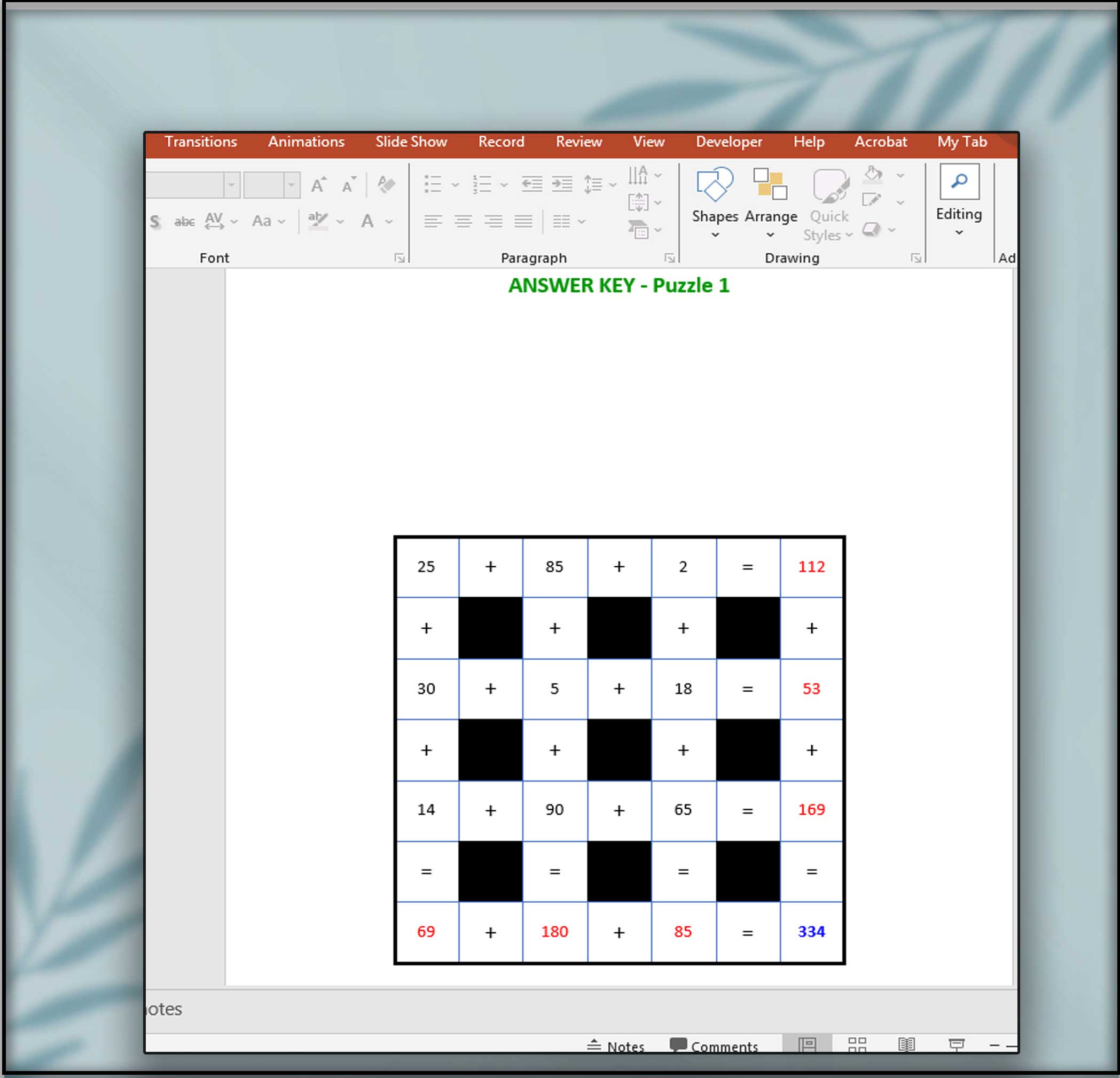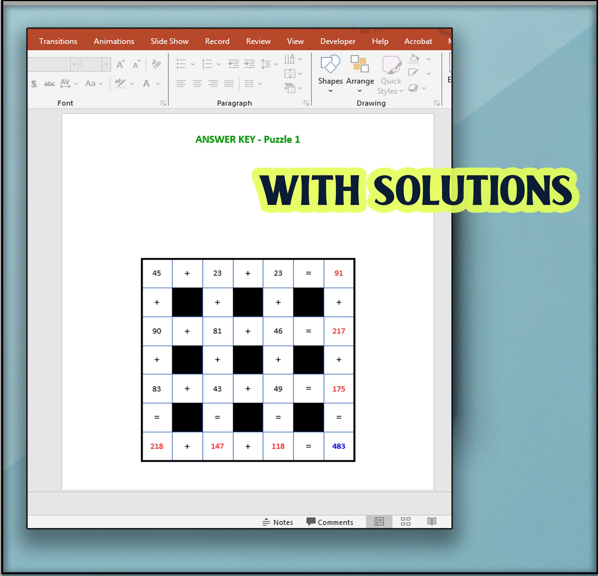 ✔ Unlimited puzzle generator (PPT or macro-enabled tool)
