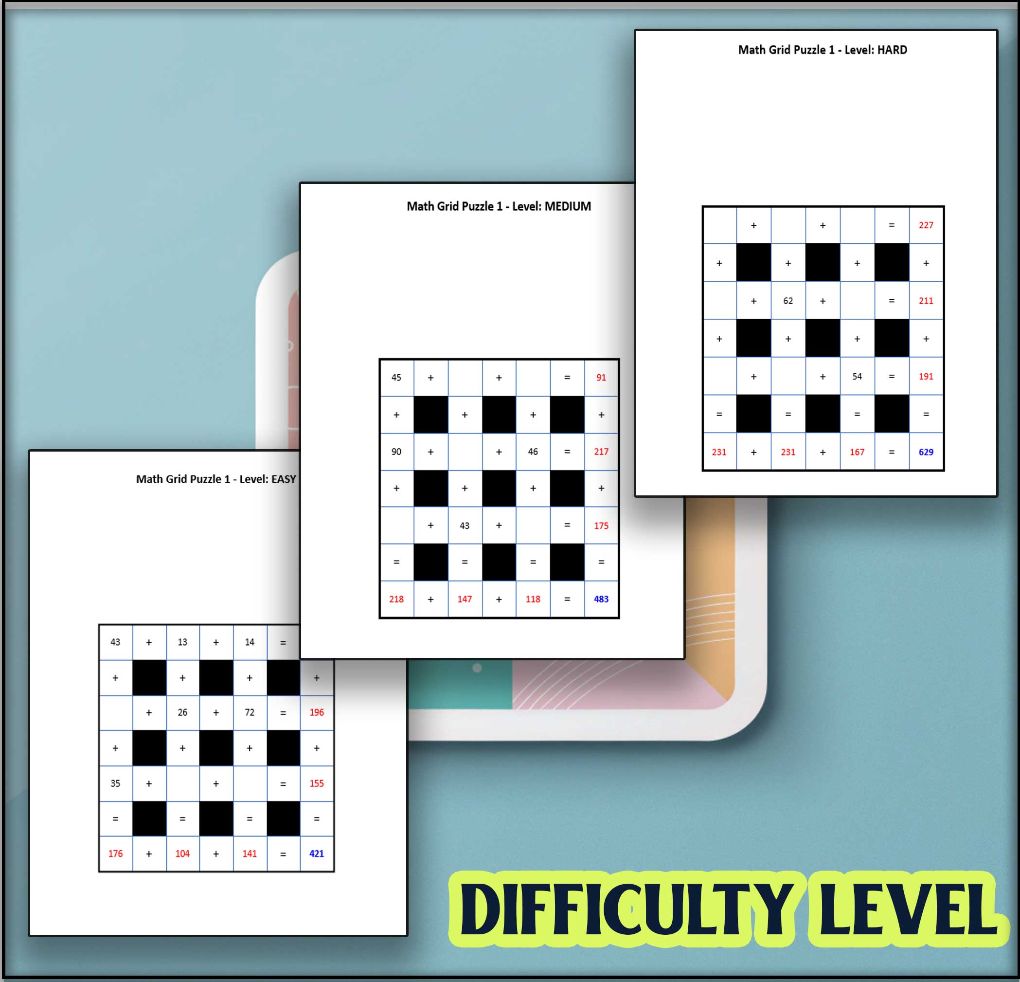 Unlimited Math Puzzle Generator –Printable Cross Sum Logic Grid Kids Math Activity
